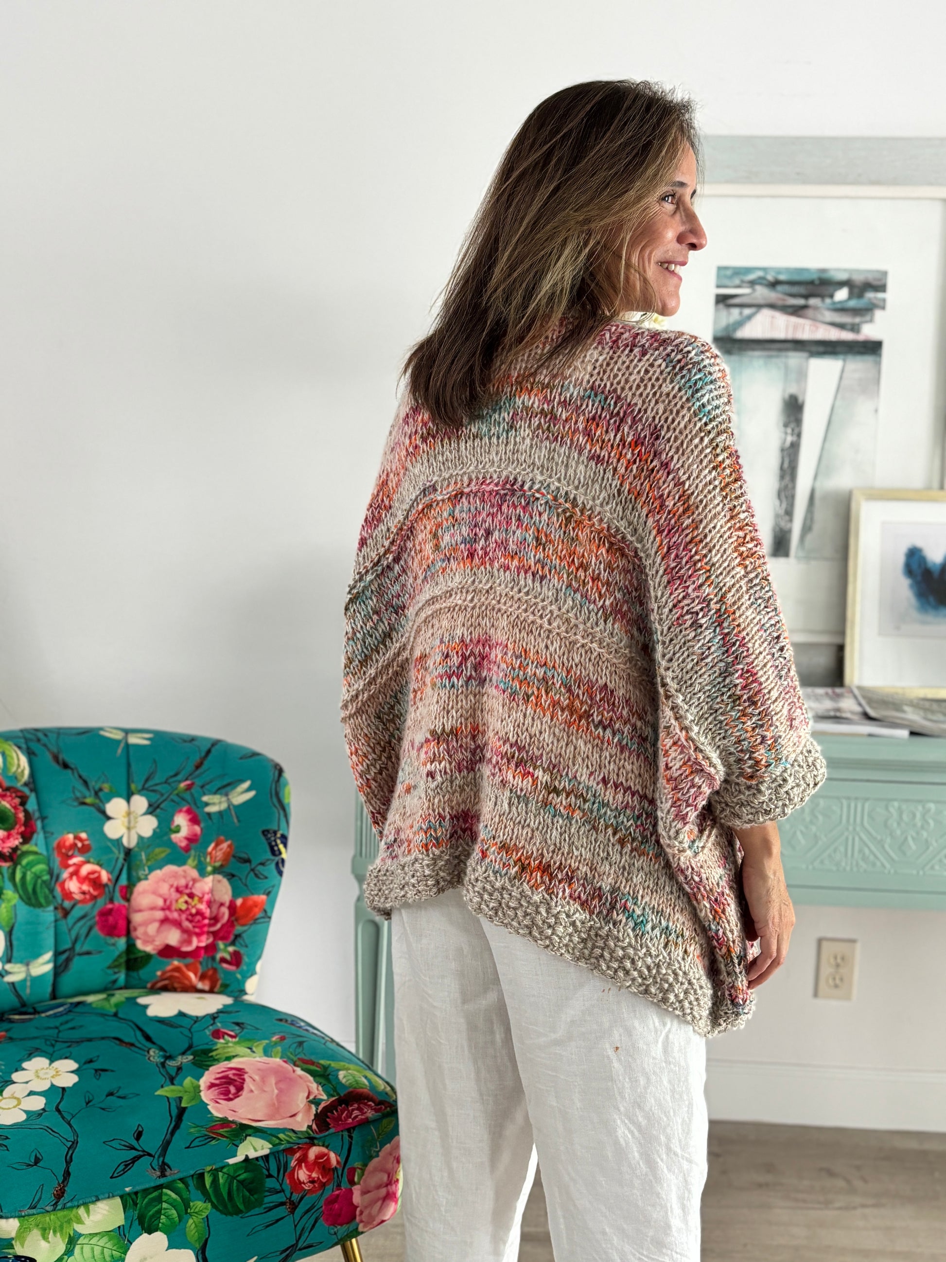El Cardigan Capri es esa prenda que eleva cualquier look con naturalidad. Tejido a mano con dedicación, combina una base neutra con sutiles matices de color que lo hacen único, lleno de vida y personalidad.