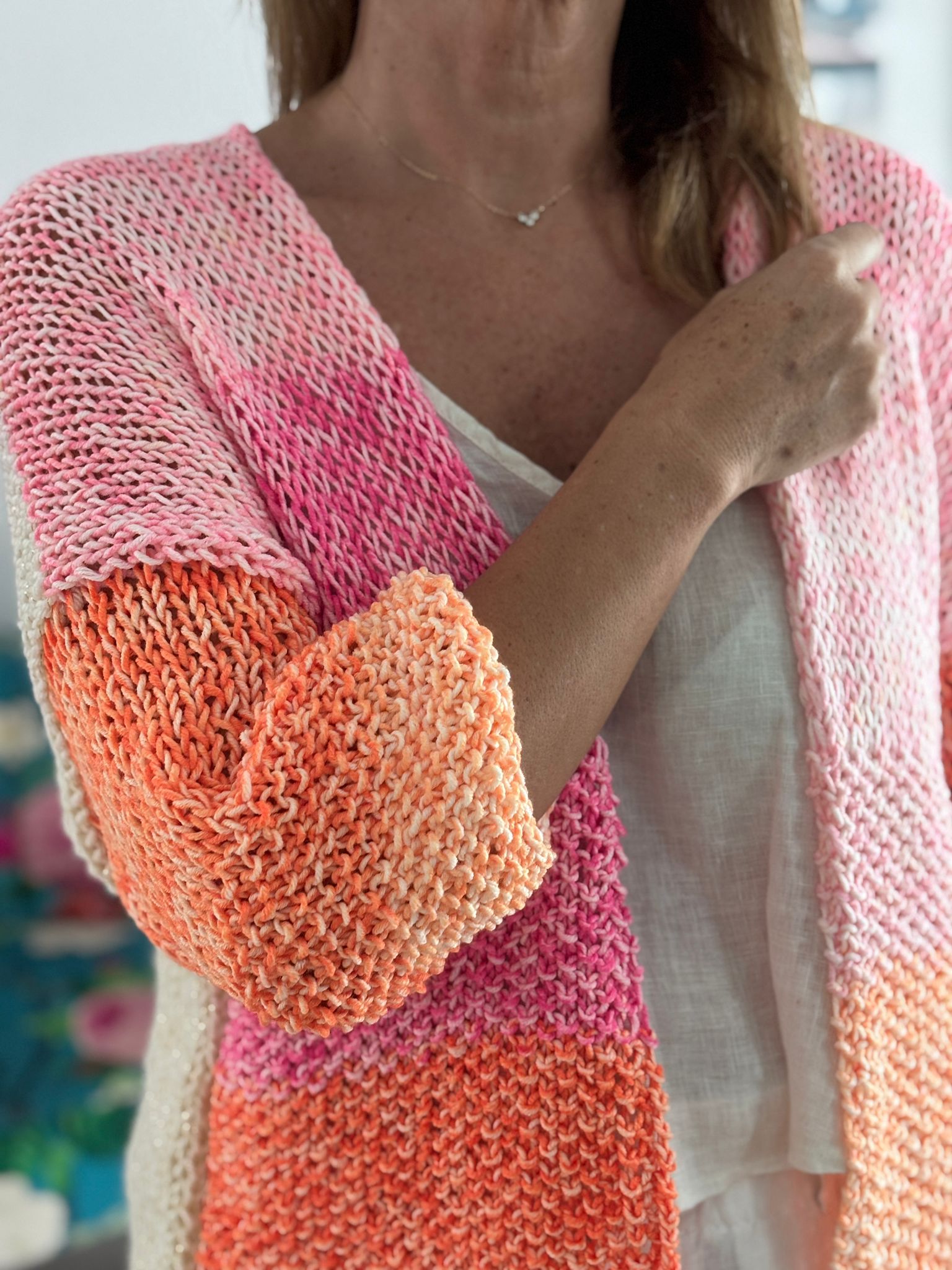 Descubre el placer de tejer tu propio cardigan con este kit completo DIY, que incluye todo lo necesario para que crees una prenda única, fresca y llena de color.